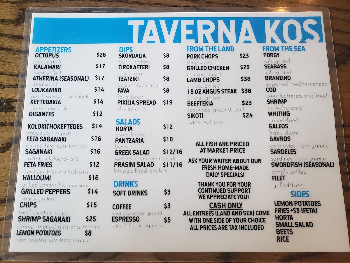 Taverna Kos Astoria offers a delightful and authentic Greek dining experience, where the menu showcases a variety of traditional appetizers, fresh seafood, tender meats, and flavorful sides, making it a perfect choice for anyone seeking a taste of Greece in Astoria.